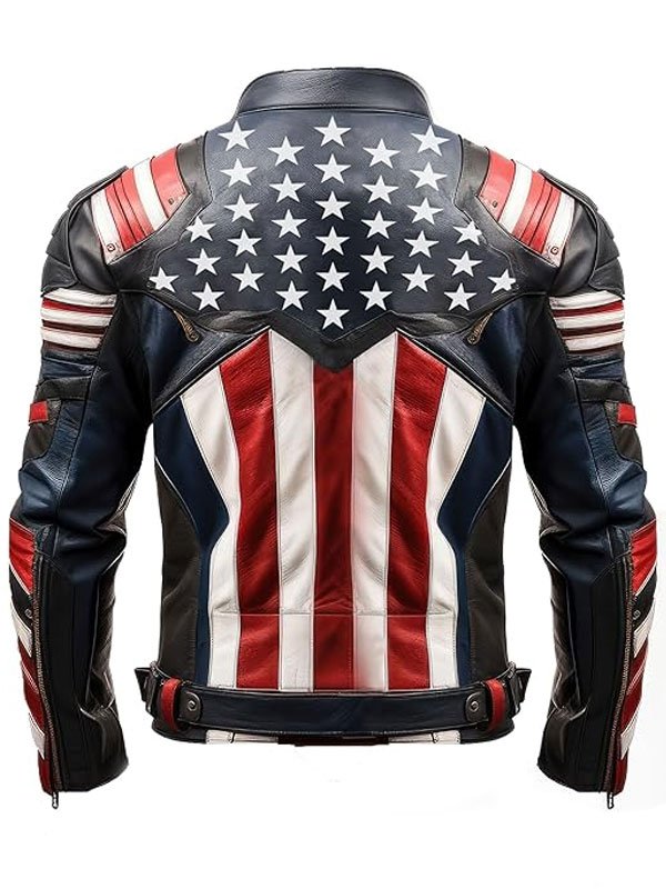 Heritage Patriot American Flag Leather Racer Motorcycle Jacket